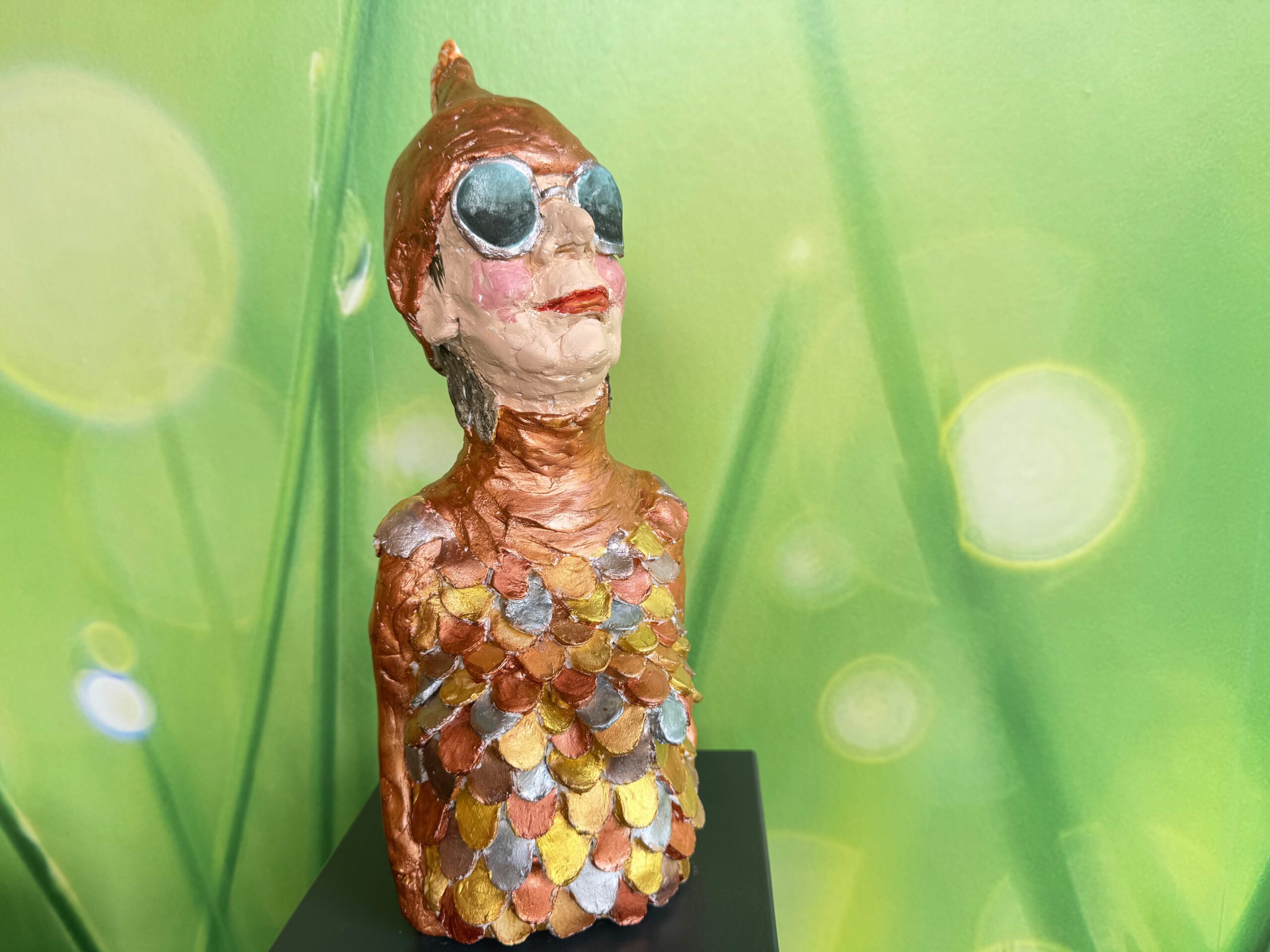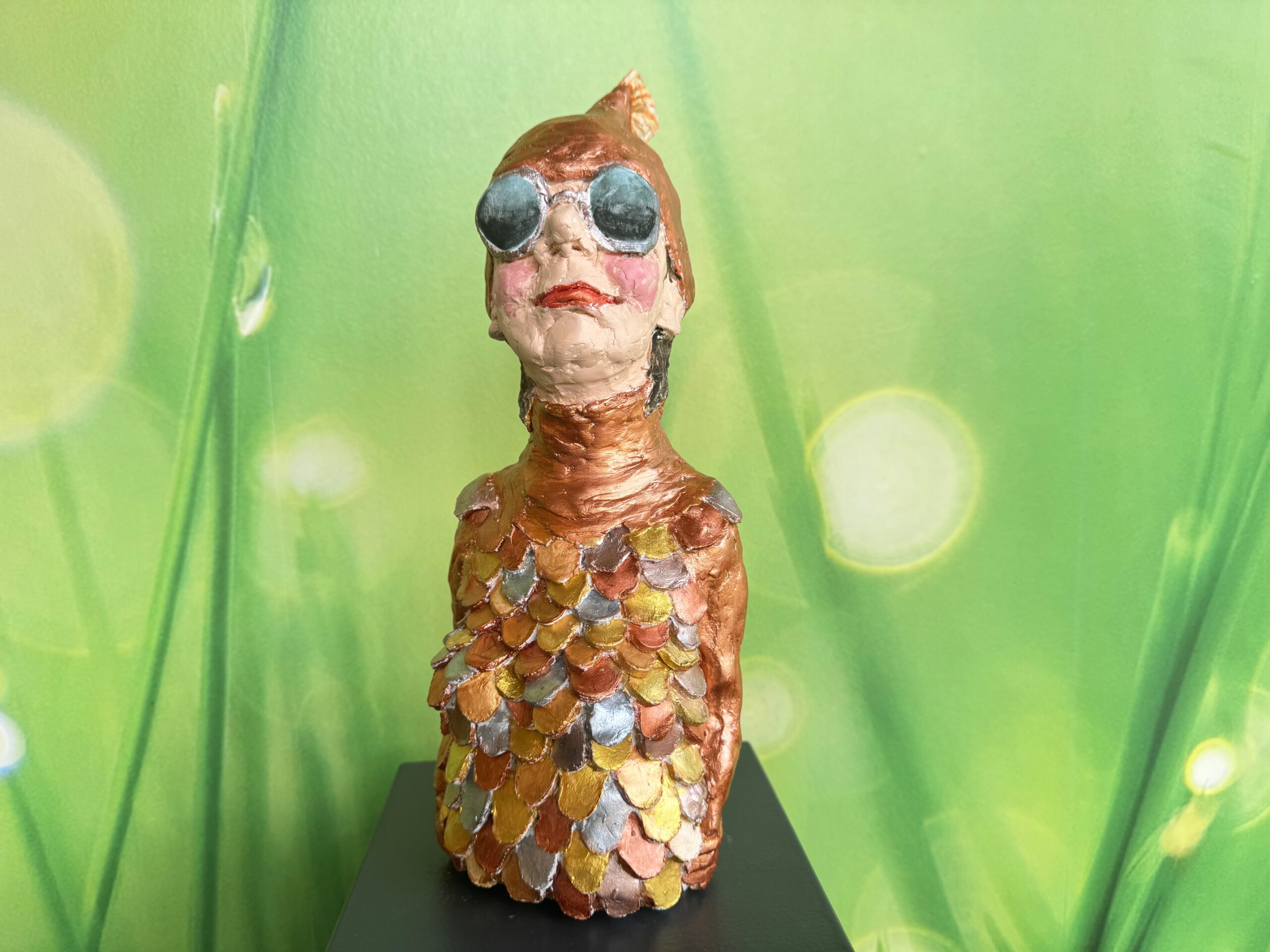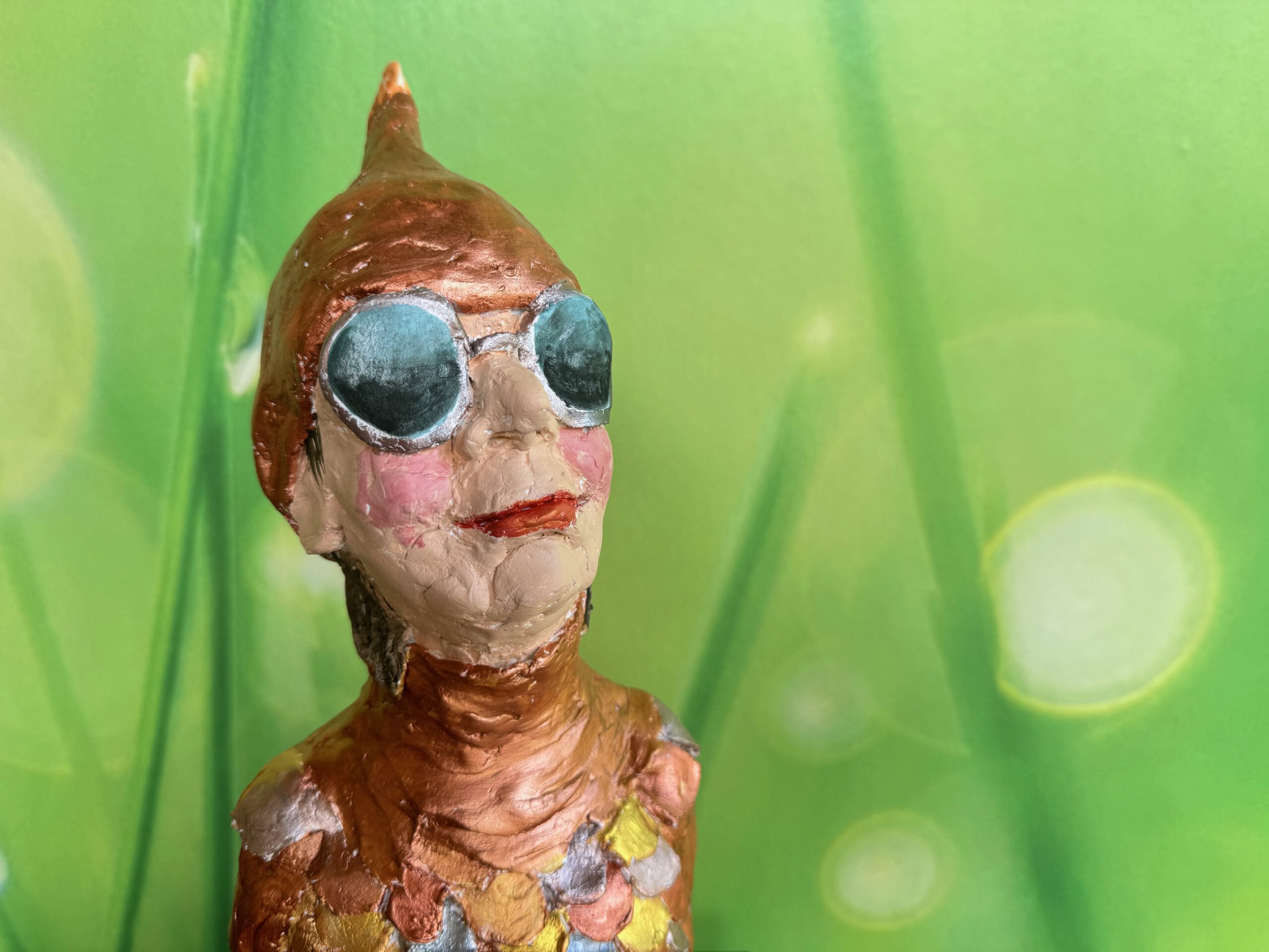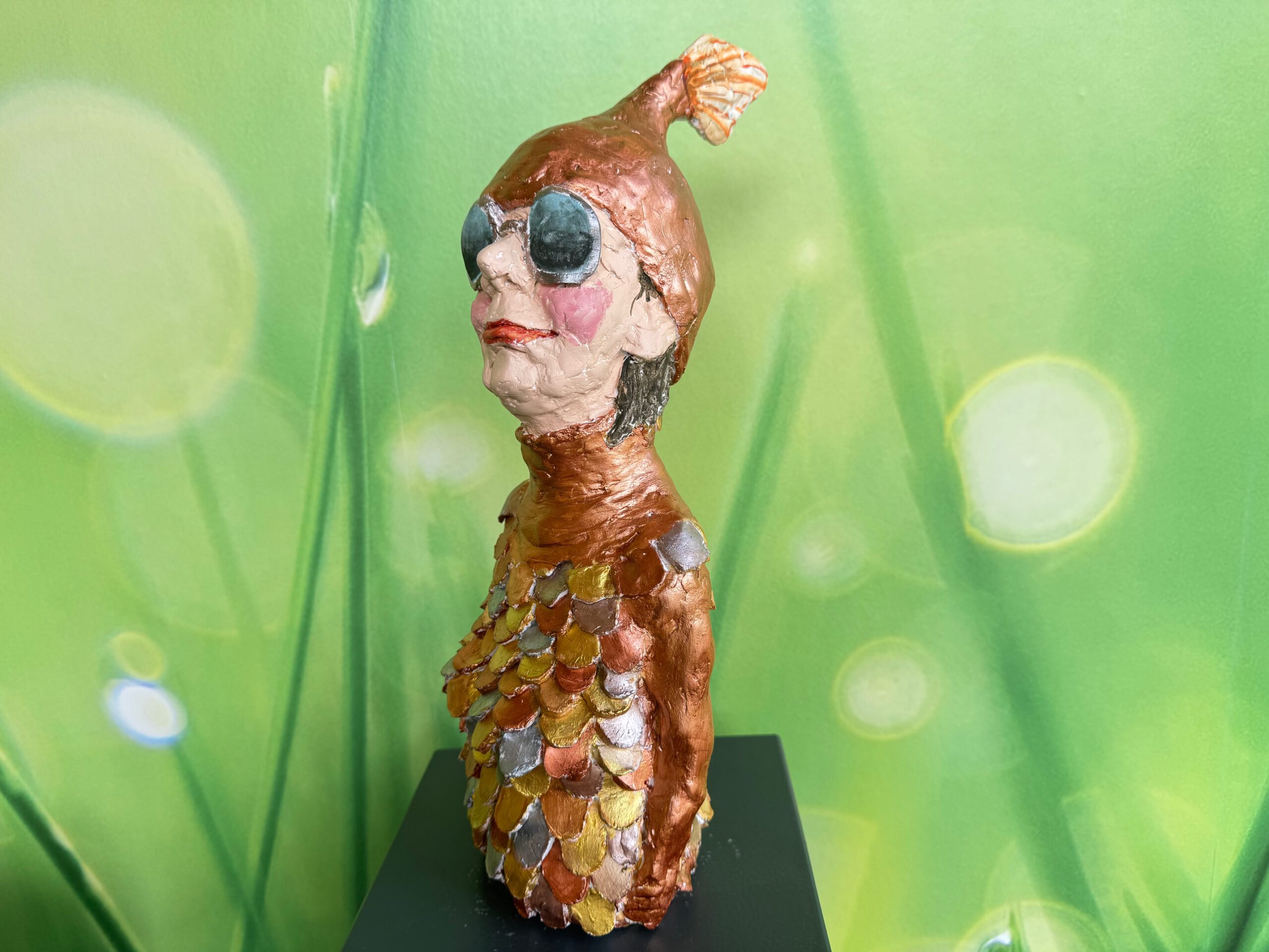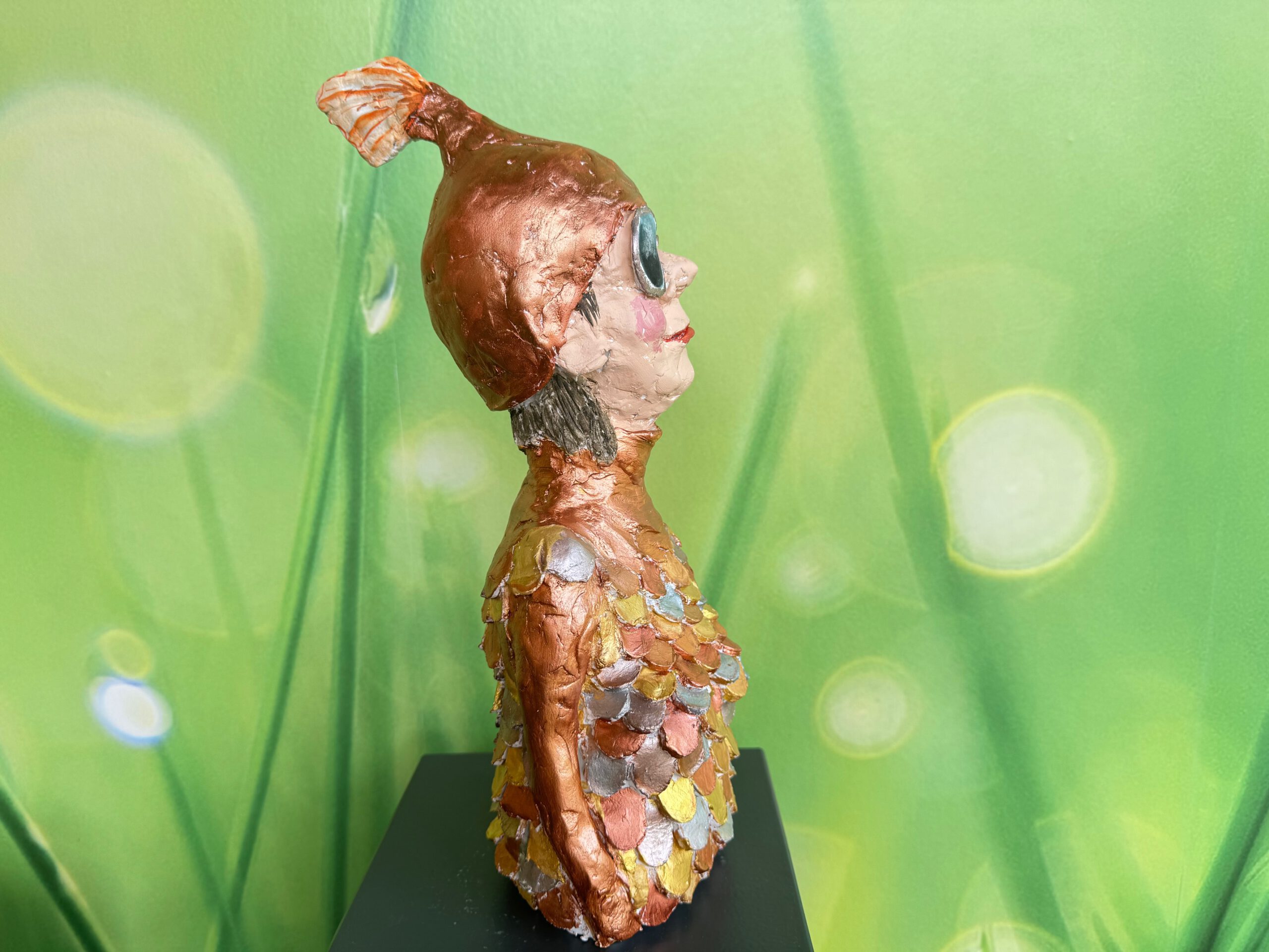- Karla Koi habe ich aus Draht und lufttrocknendem Ton modelliert und dann mit Acrylfarben bemalt.