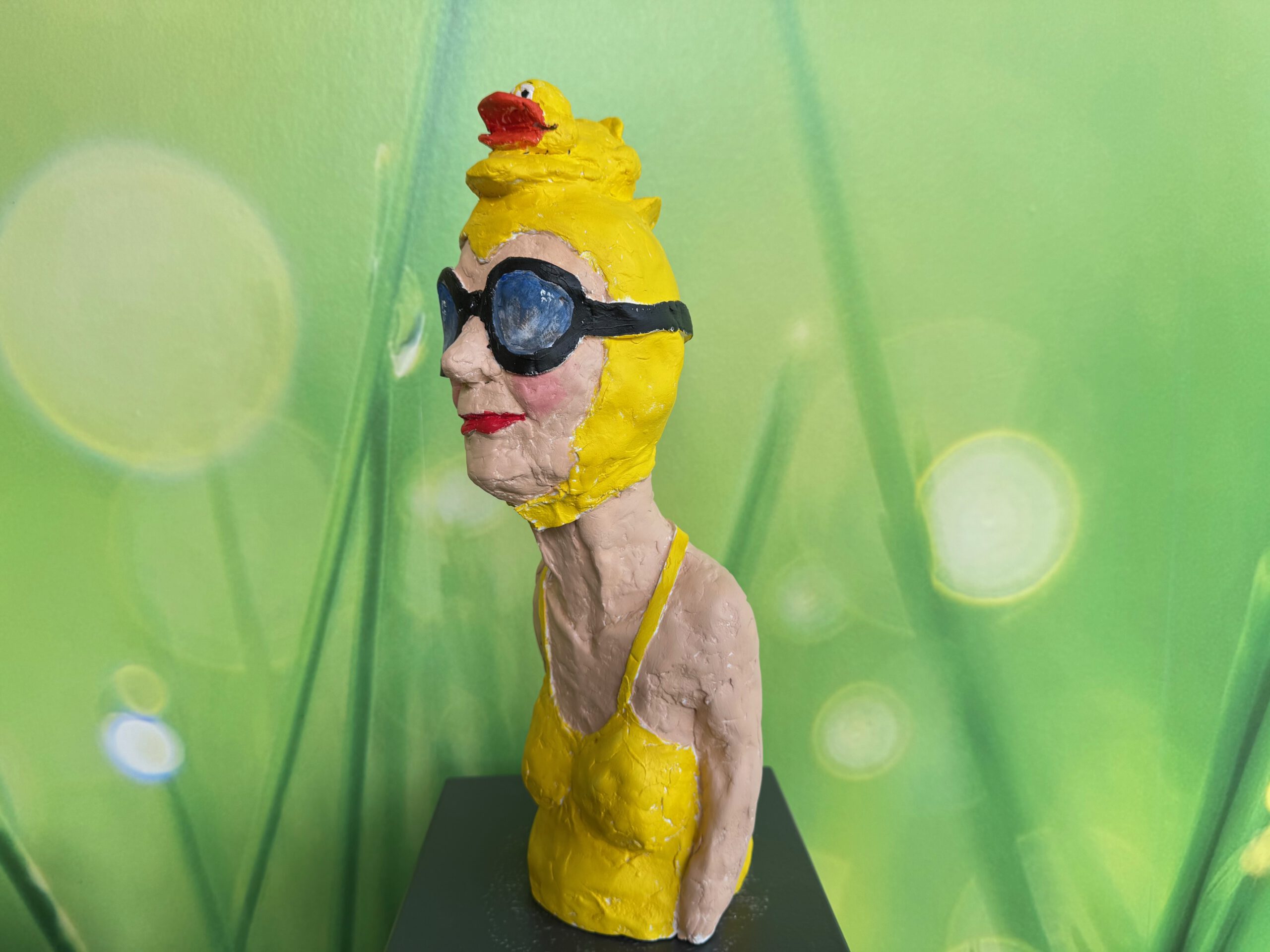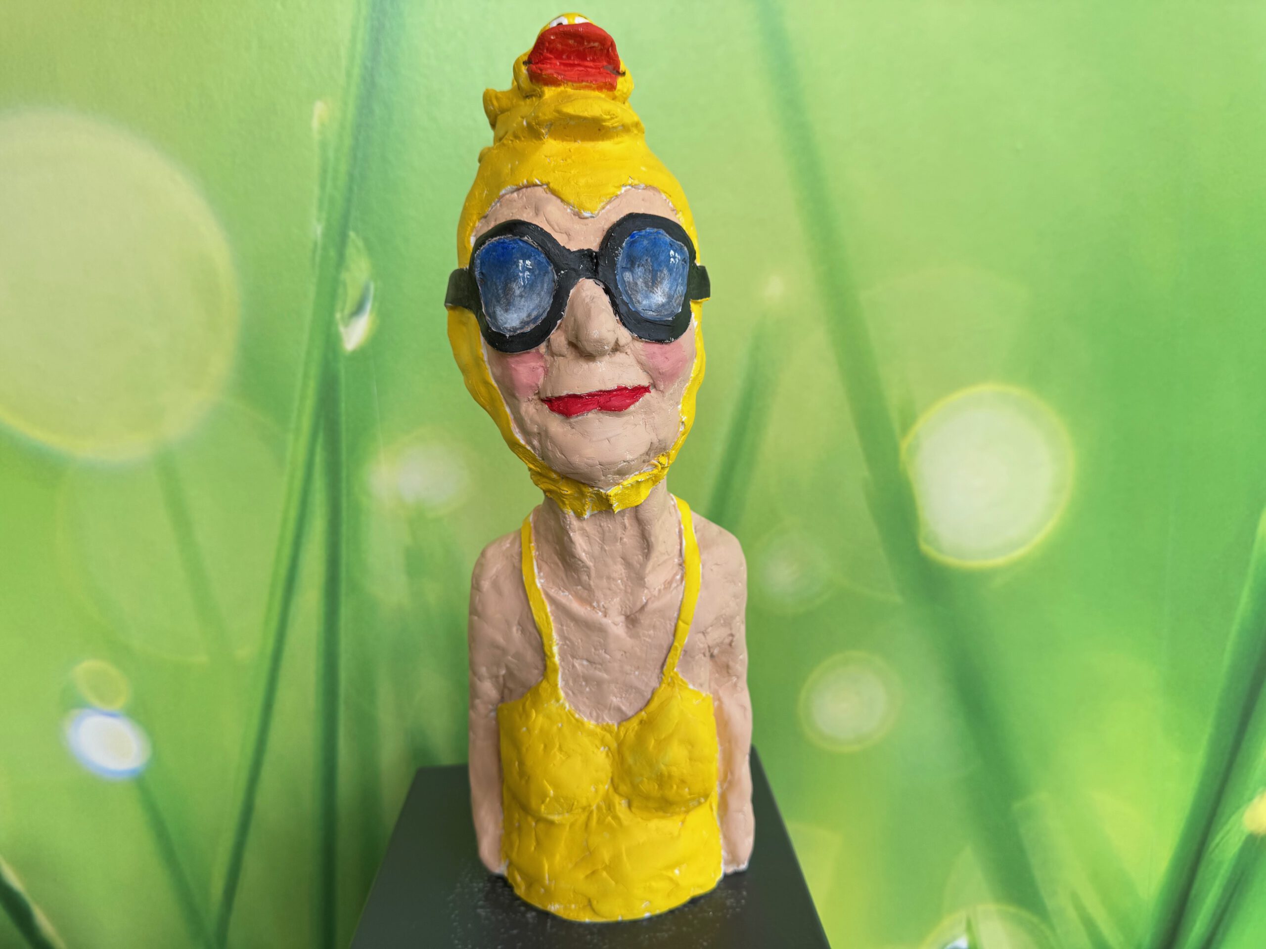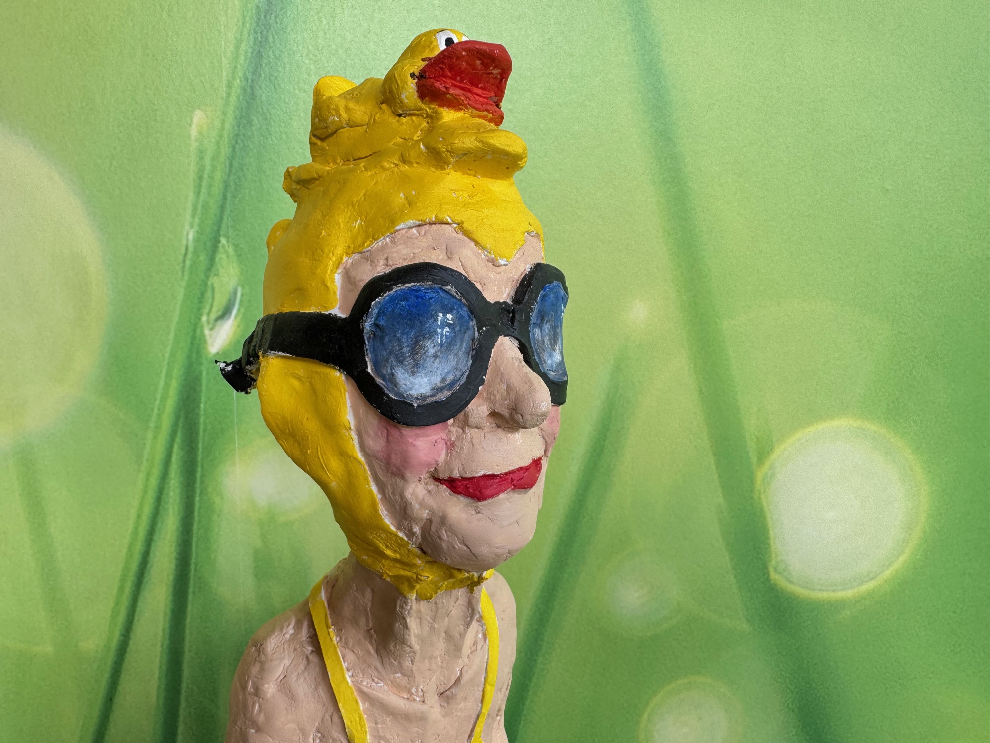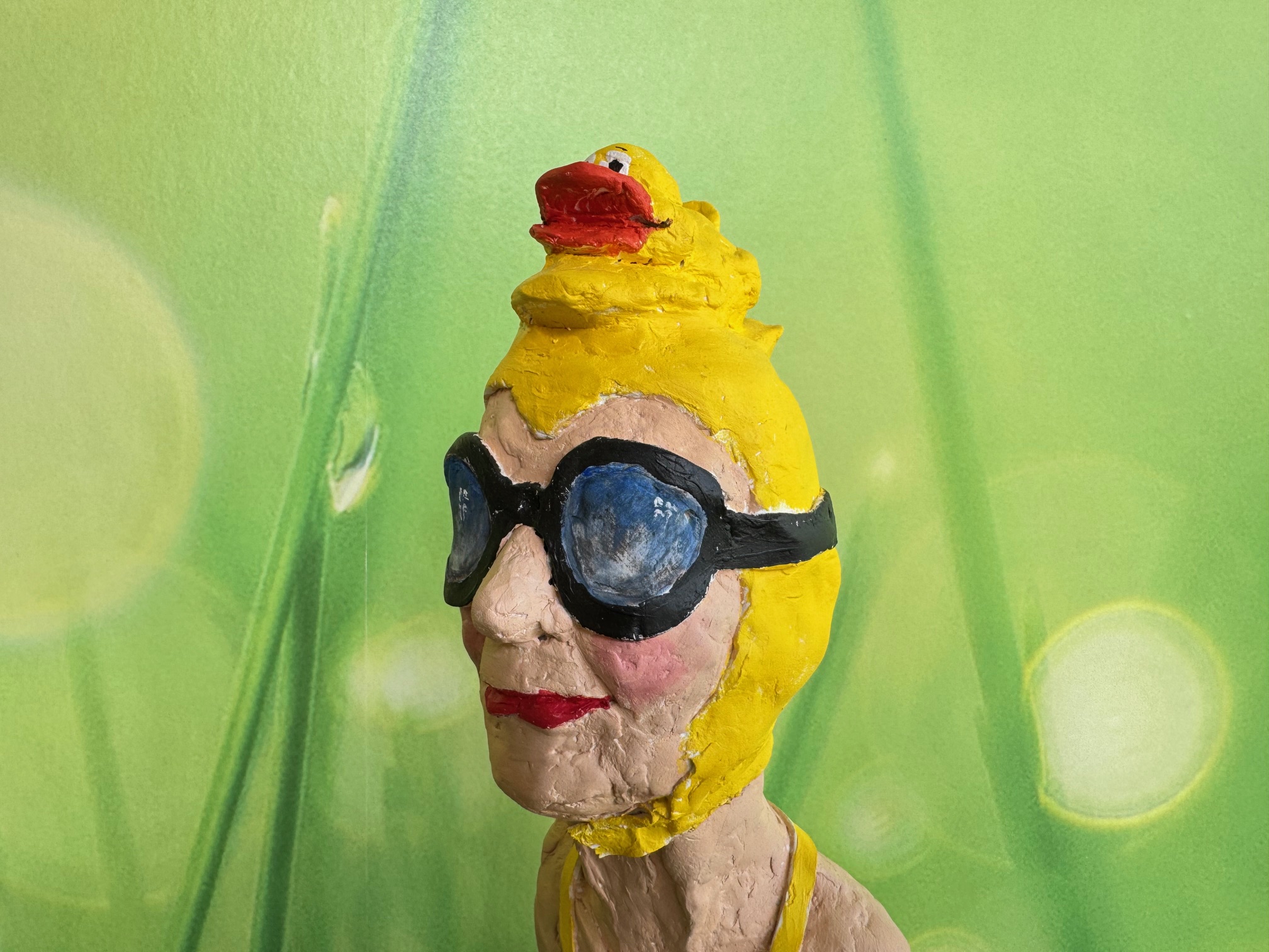 - Louise habe ich aus Draht und lufttrocknendem Ton modelliert und dann mit Acrylfarben bemalt.