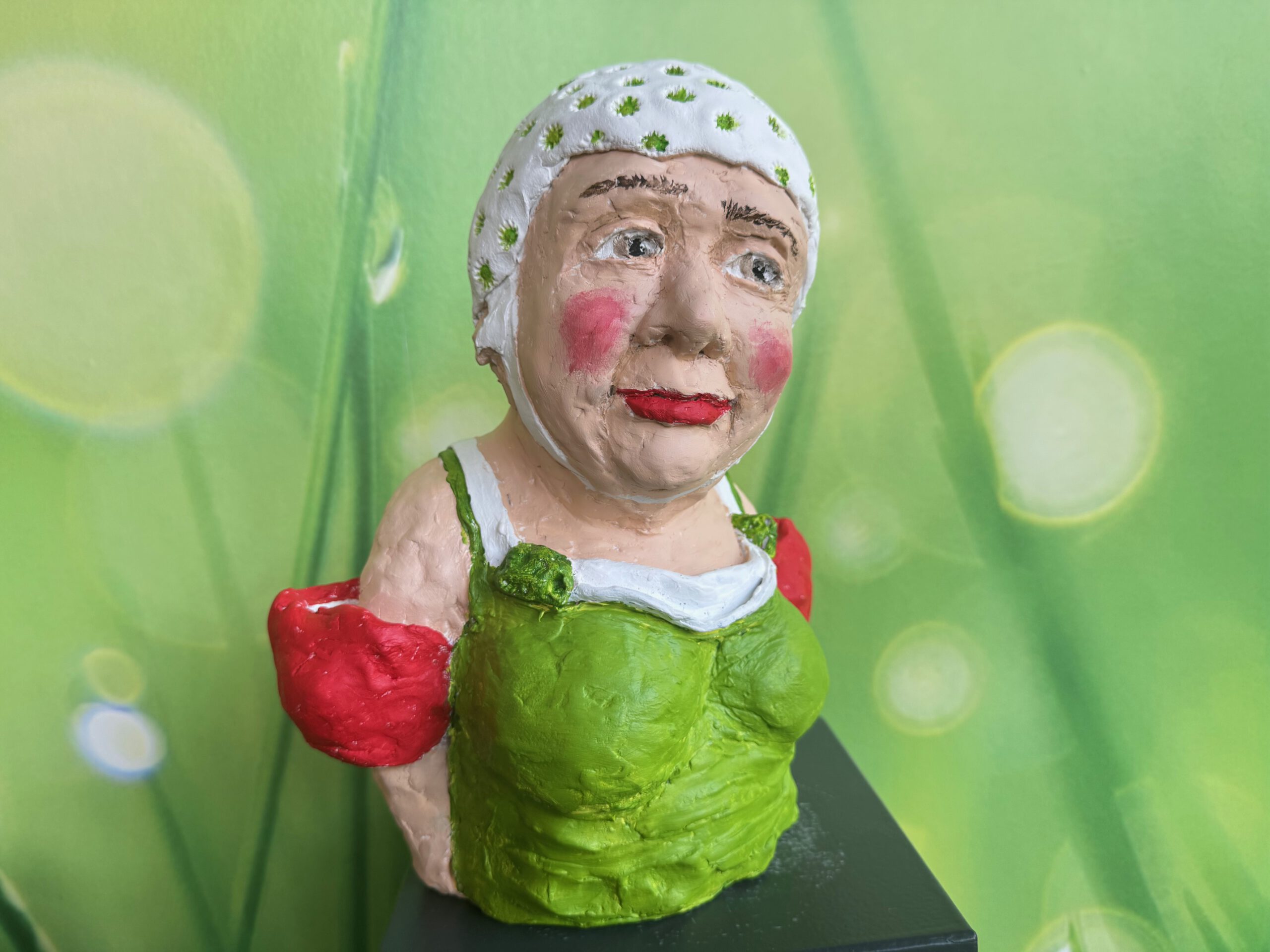 - Magda habe ich aus Draht und lufttrocknendem Ton modelliert und dann mit Acrylfarben bemalt.