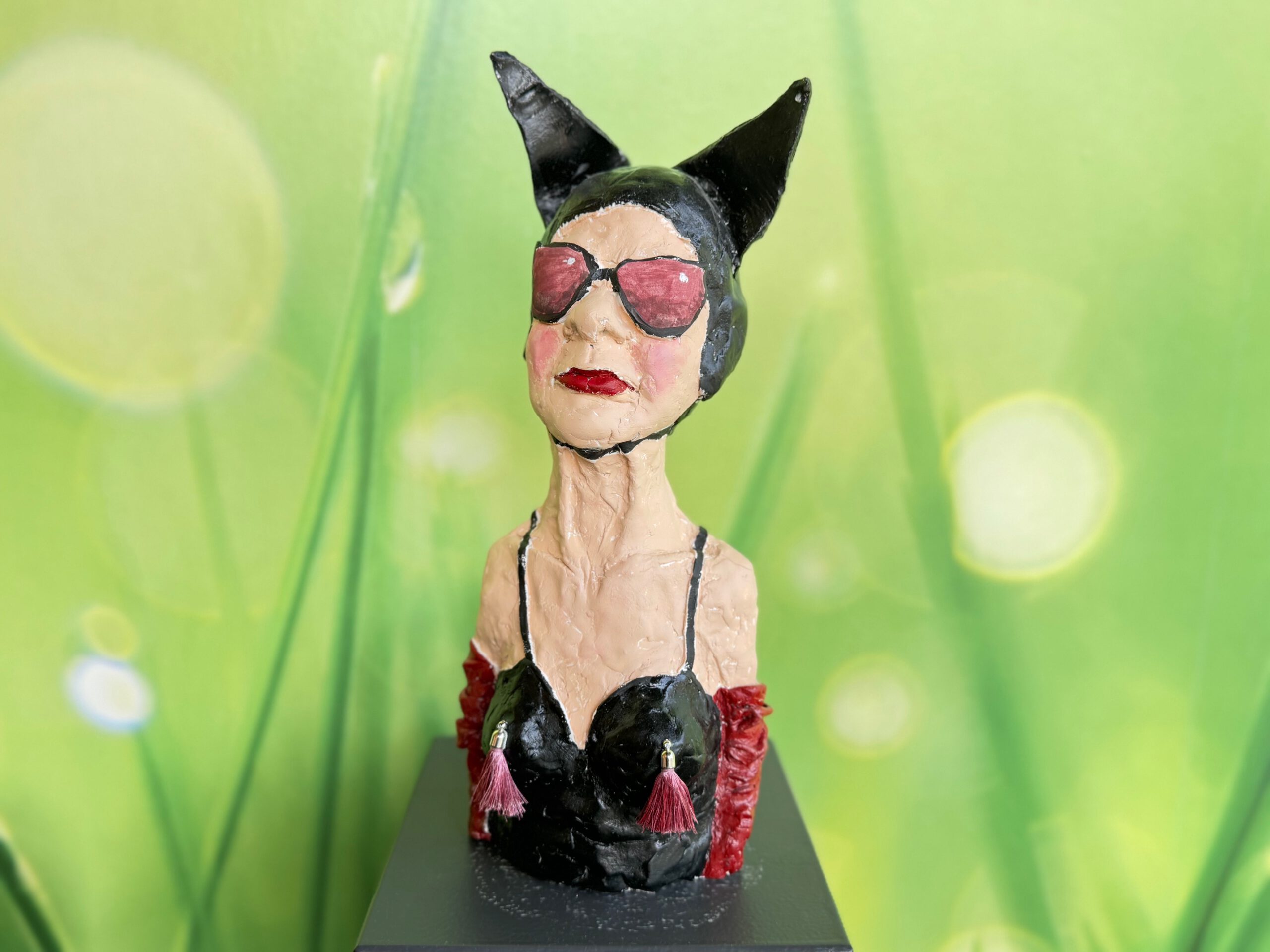 - Belinda habe ich aus Draht und lufttrocknendem Ton modelliert und dann mit Acrylfarben bemalt.