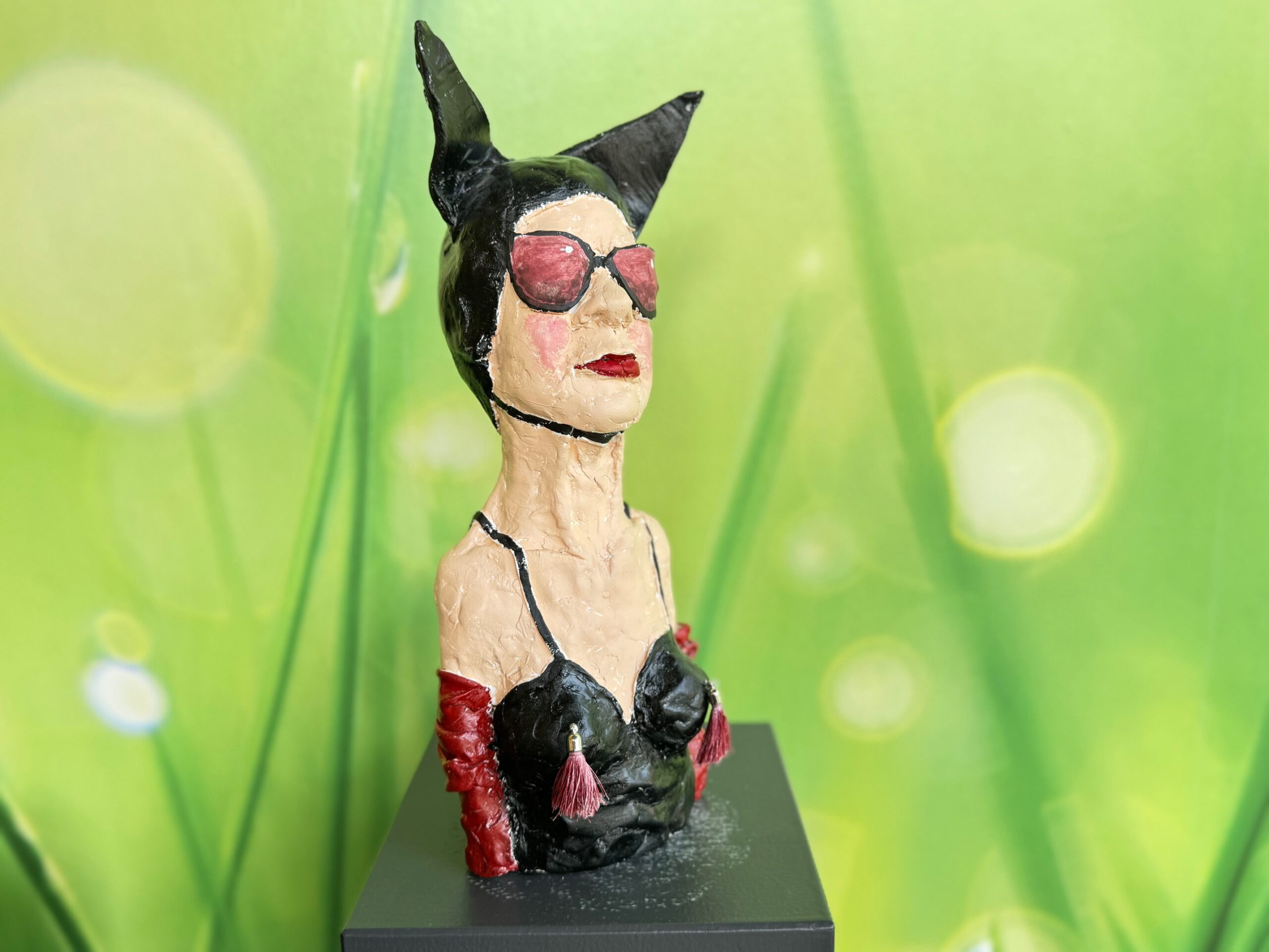 Da ich ausschließlich mit lufttrocknendem Ton arbeite, ist sie auch nur für den Innenbereich geeignet.